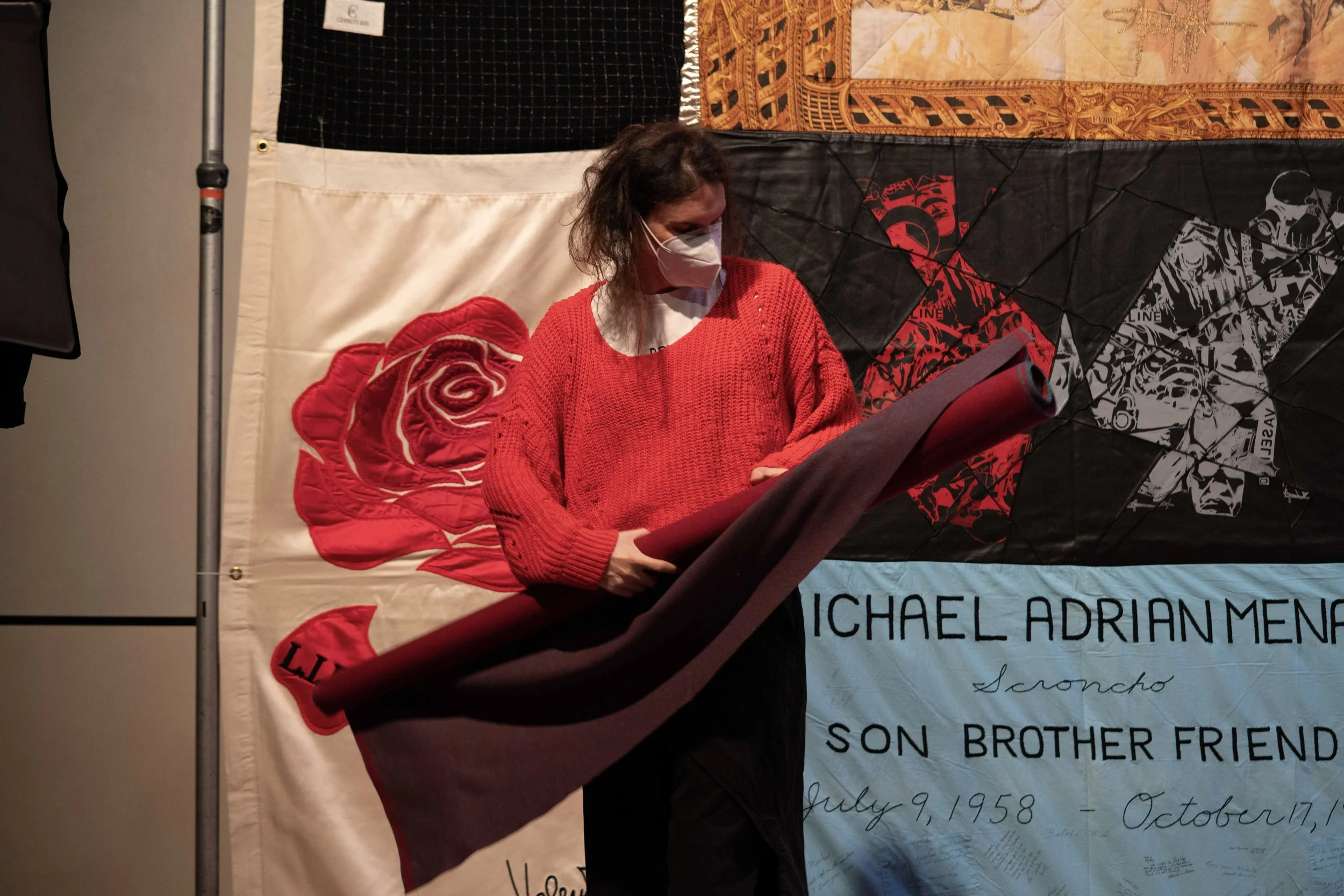 On October 14 & 15, 2022, the New York City AIDS Memorial was thrilled to partner with textile design studio Maharam and the National AIDS Memorial on a series of free, public, artist-led Community Quilt-Making Workshops at the Whitney Museum of American Art, New York, to mark the thirty-fifth anniversary of the AIDS Memorial Quilt. Over 150 artists, designers, activists, volunteers and community members joined us and AIDS Memorial Quilt co-founder and conservator Gert McMullin as we engaged in cross-generational conversation, continuing the intention of the activists who first imagined the Quilt—to inform, to share, and to build community. See images from the event below: