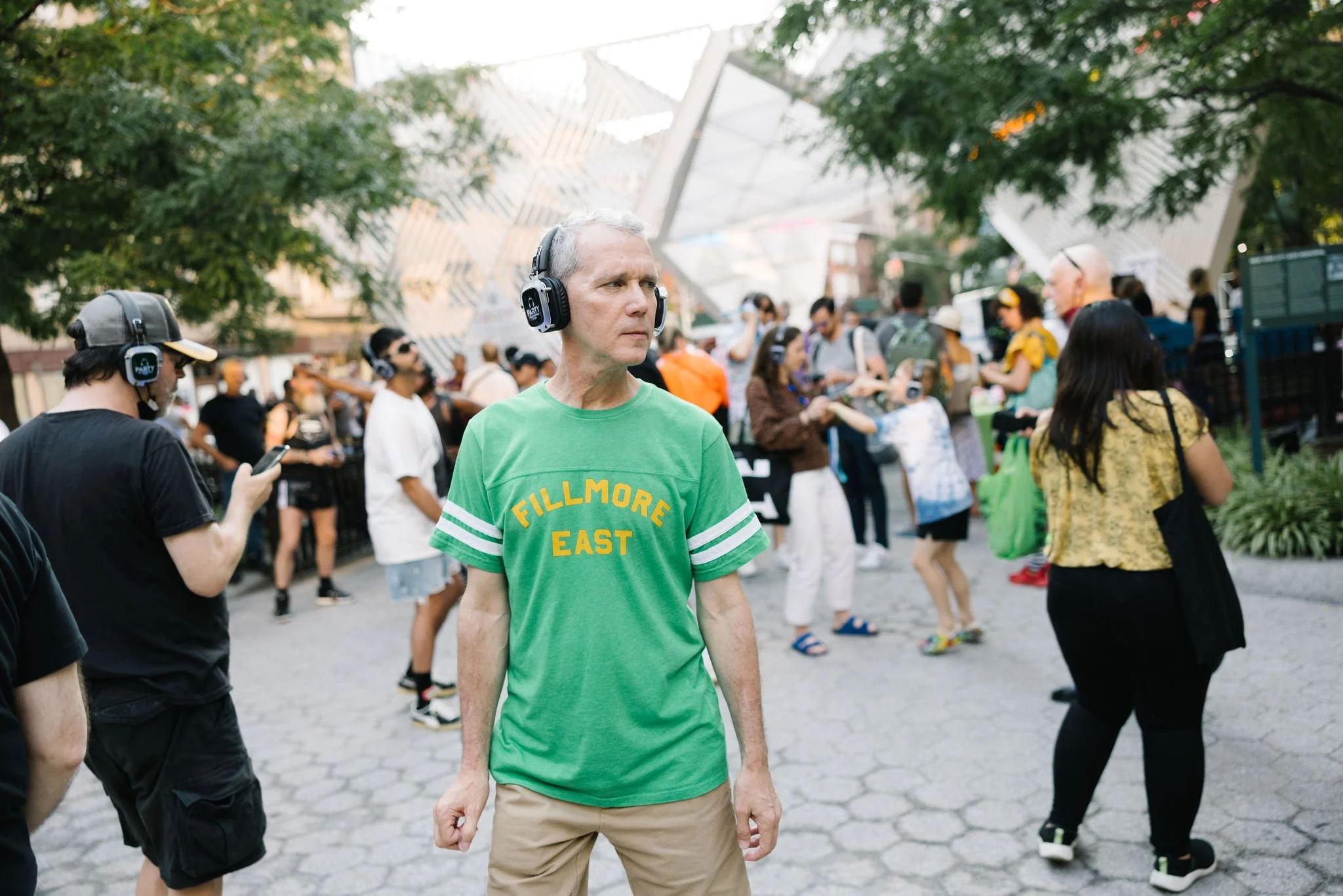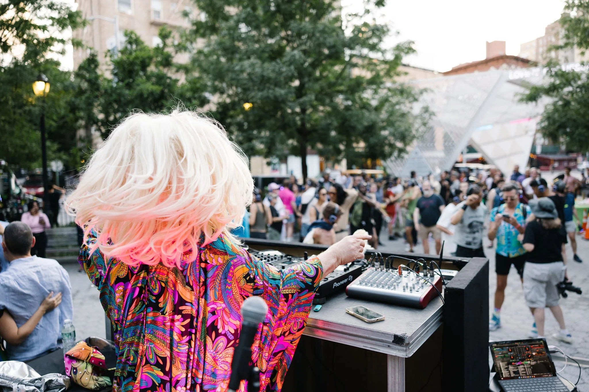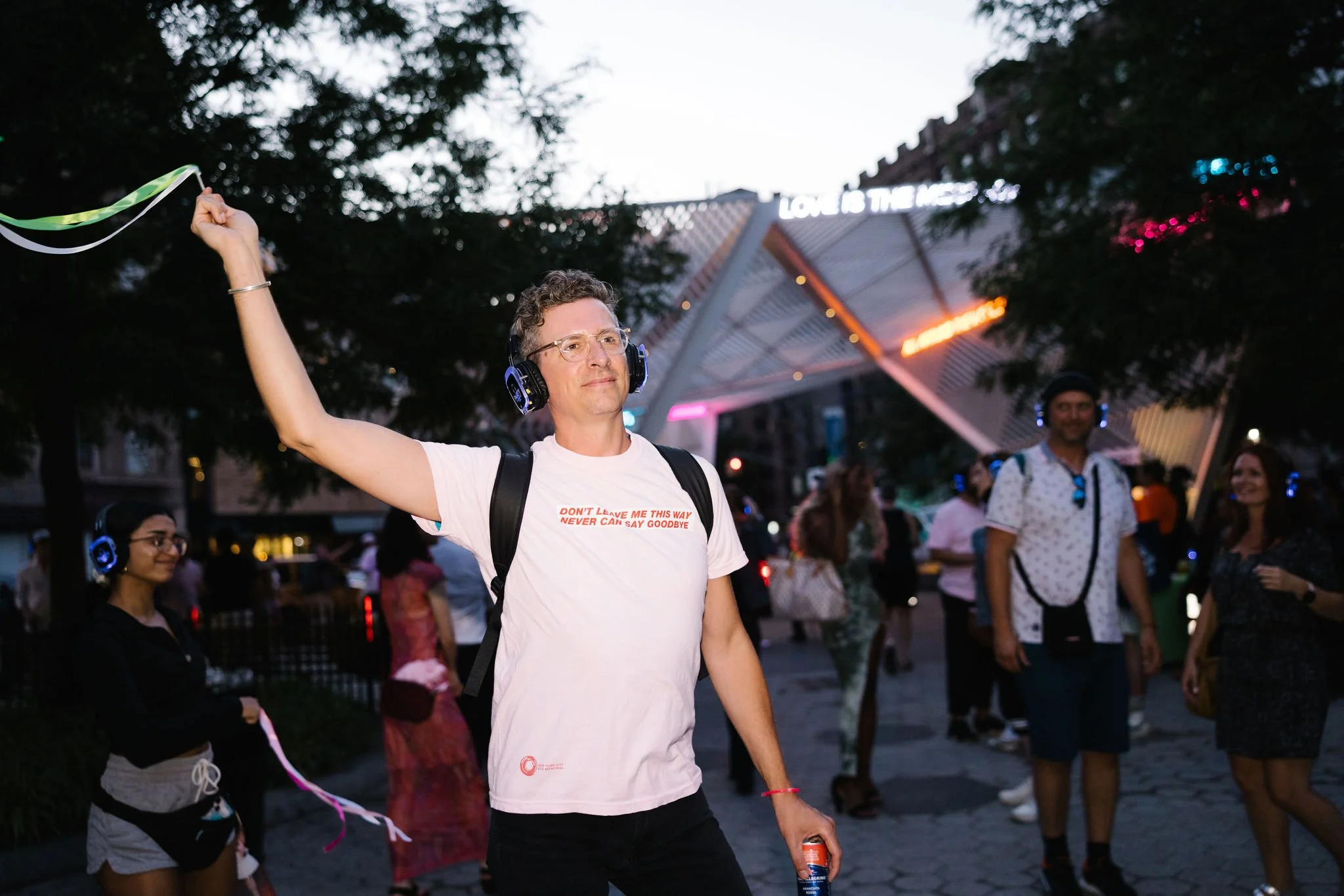 On Wednesday, June 29, from 7-9 PM, the New York City AIDS Memorial celebrated music, memory, and our new installation Songs for a Memorial with a silent disco dance party in the NYC AIDS Memorial Park at St. Vincent’s Triangle. We invited our friends, neighbors, supporters, and community to cool down after a bustling NYC Pride Weekend to dance under the stars with sets by DJ Lady Bunny and DJ Lina Bradford.