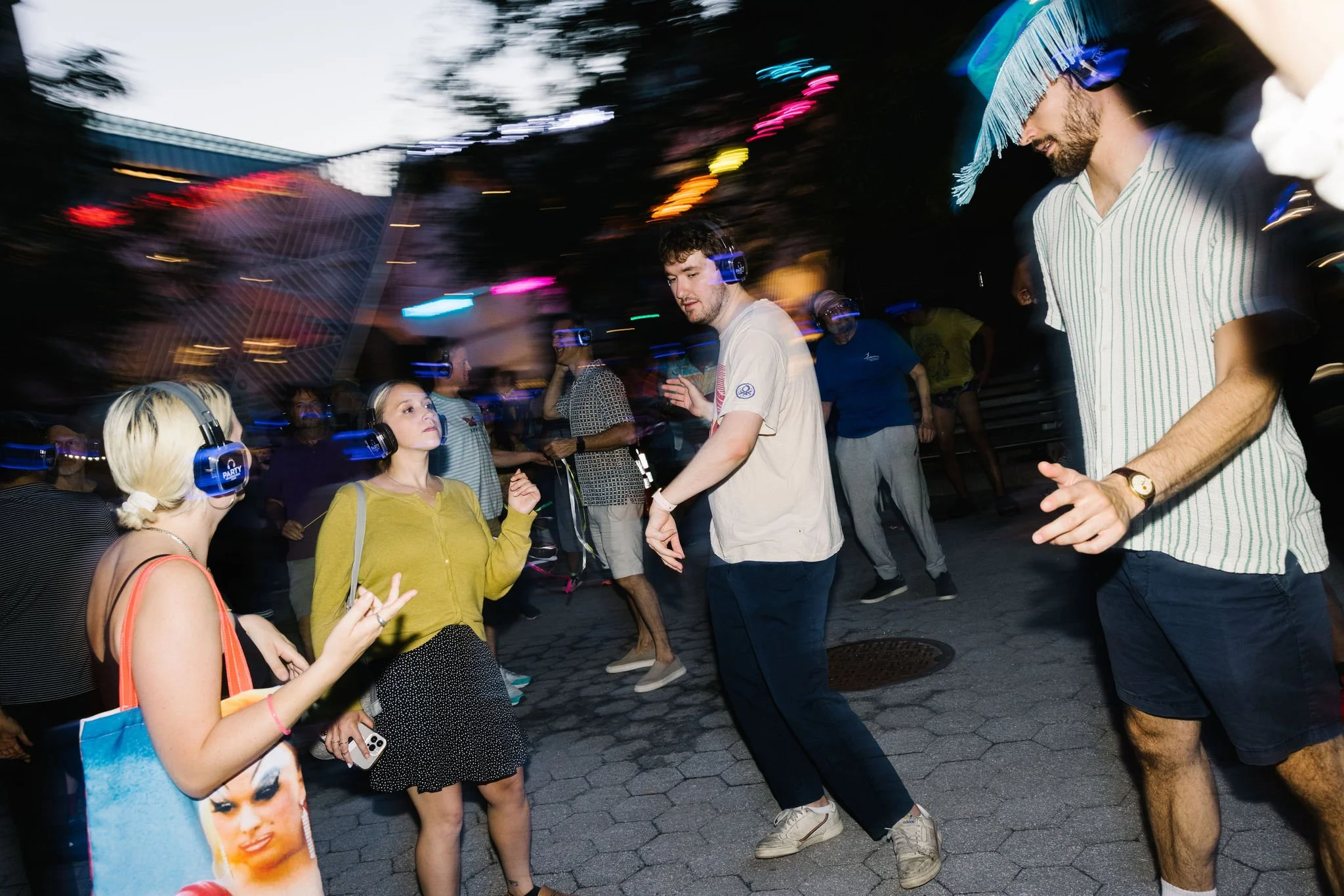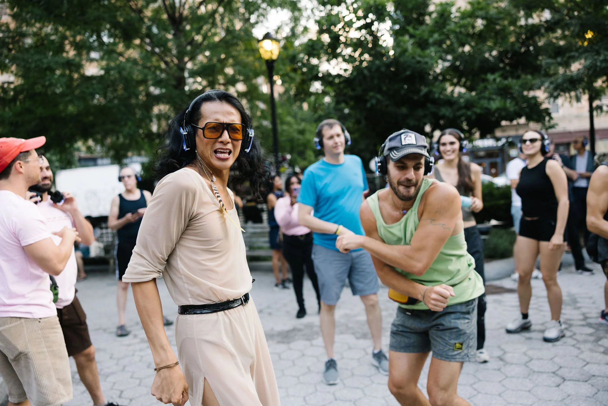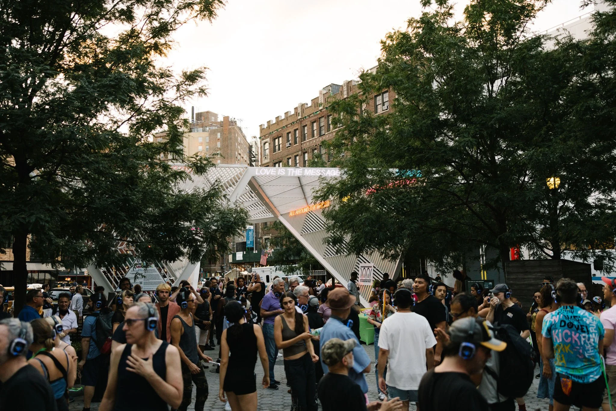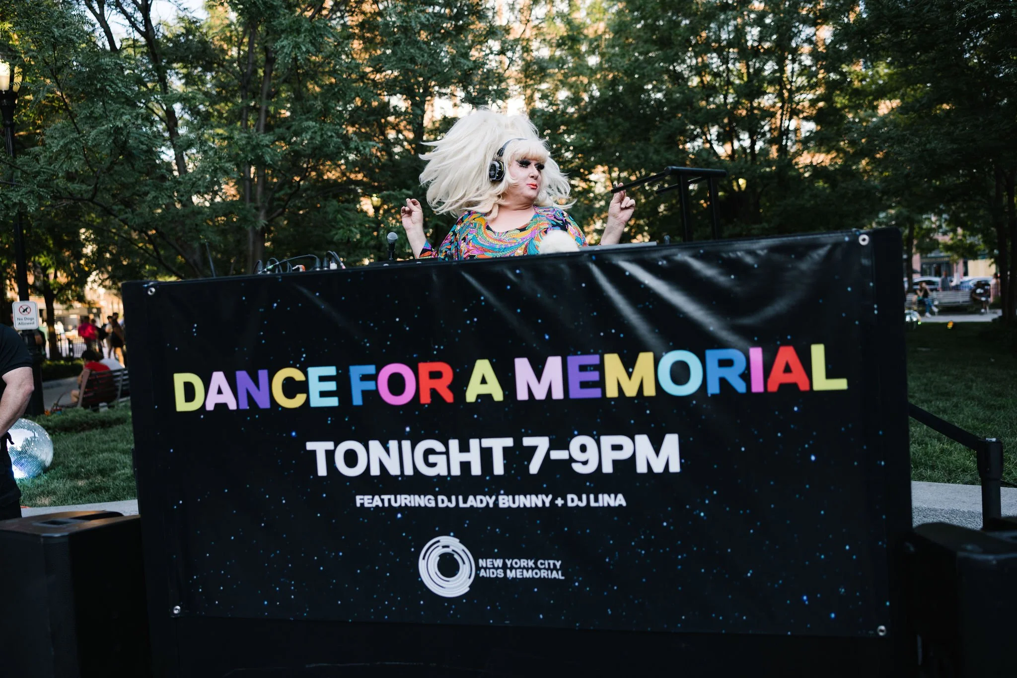 On Wednesday, June 29, from 7-9 PM, the New York City AIDS Memorial celebrated music, memory, and our new installation Songs for a Memorial with a silent disco dance party in the NYC AIDS Memorial Park at St. Vincent’s Triangle. We invited our friends, neighbors, supporters, and community to cool down after a bustling NYC Pride Weekend to dance under the stars with sets by DJ Lady Bunny and DJ Lina Bradford.