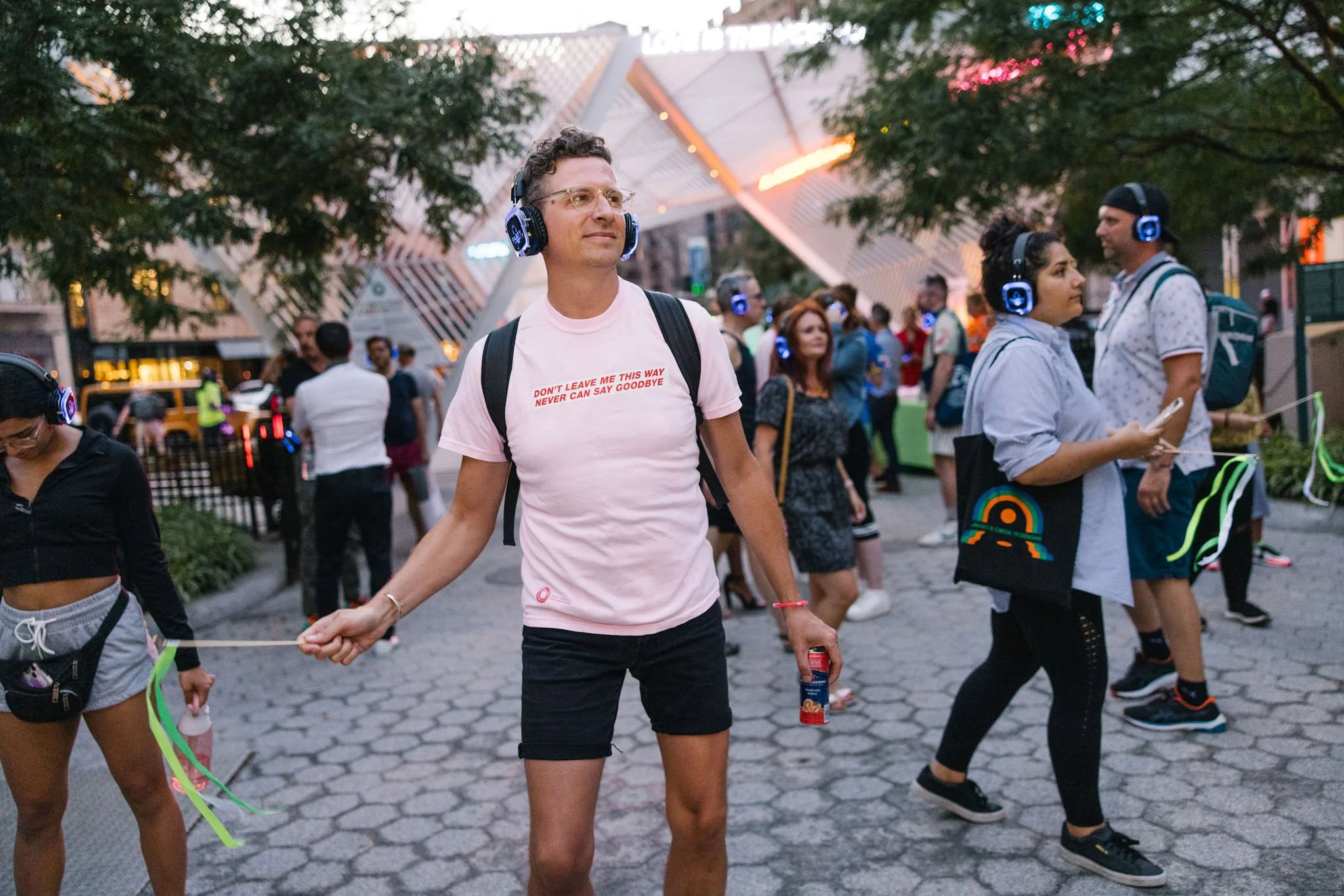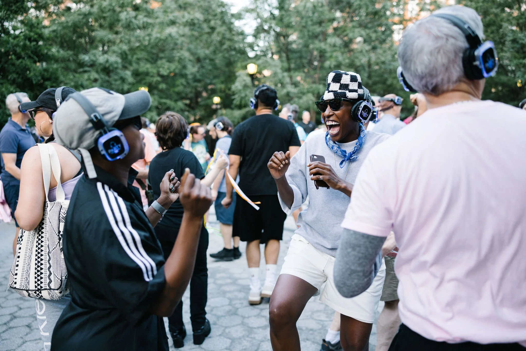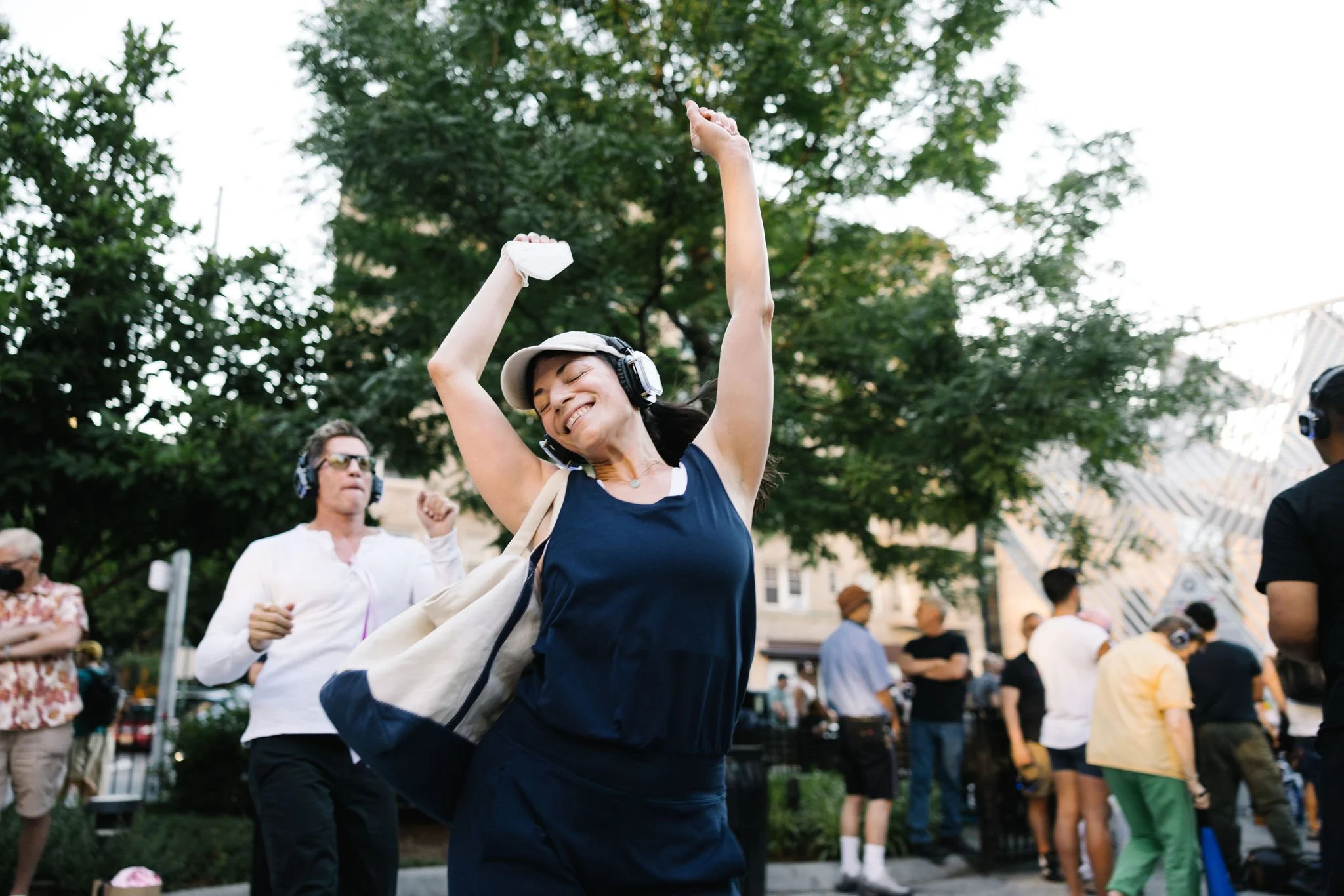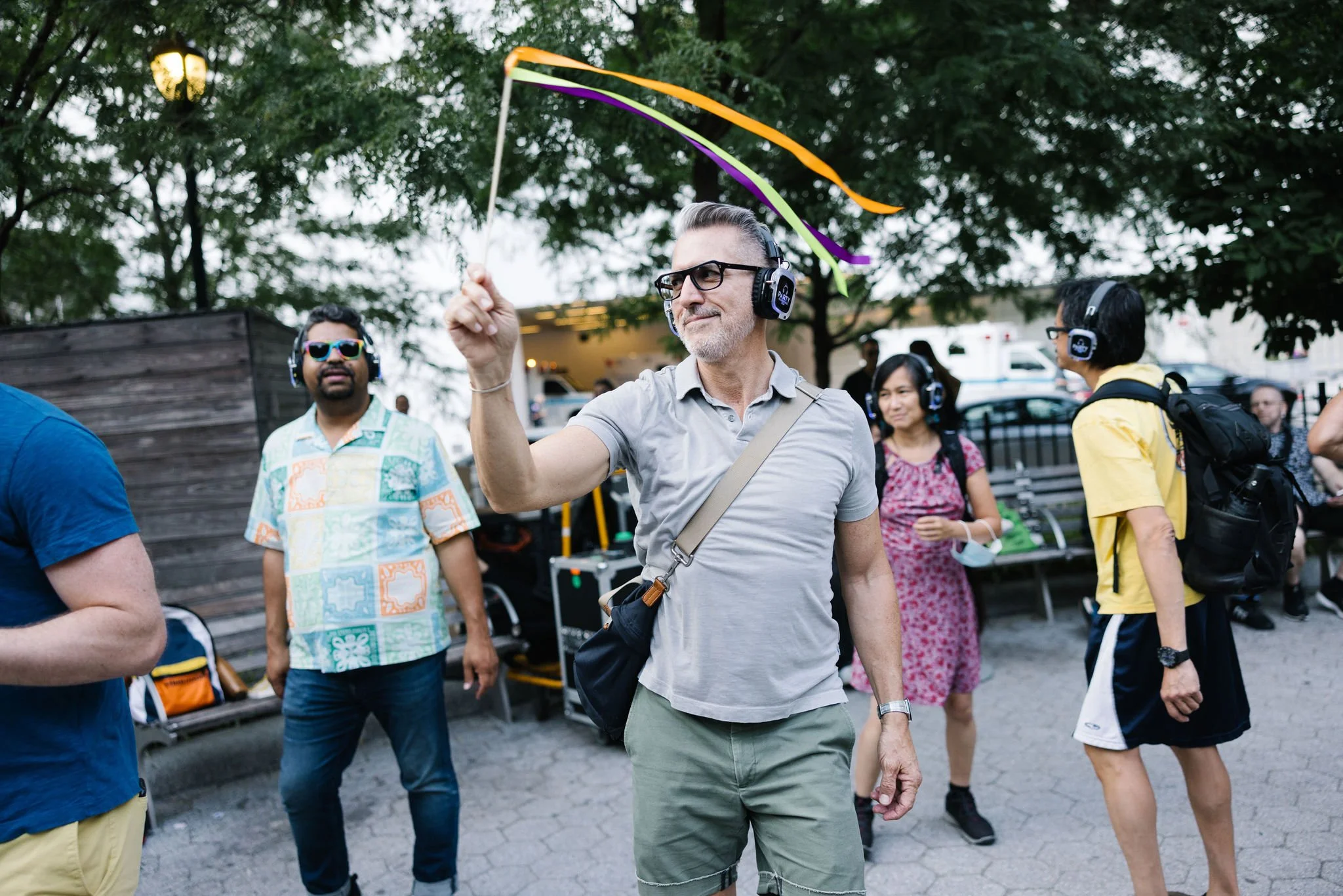 On Wednesday, June 29, from 7-9 PM, the New York City AIDS Memorial celebrated music, memory, and our new installation Songs for a Memorial with a silent disco dance party in the NYC AIDS Memorial Park at St. Vincent’s Triangle. We invited our friends, neighbors, supporters, and community to cool down after a bustling NYC Pride Weekend to dance under the stars with sets by DJ Lady Bunny and DJ Lina Bradford.