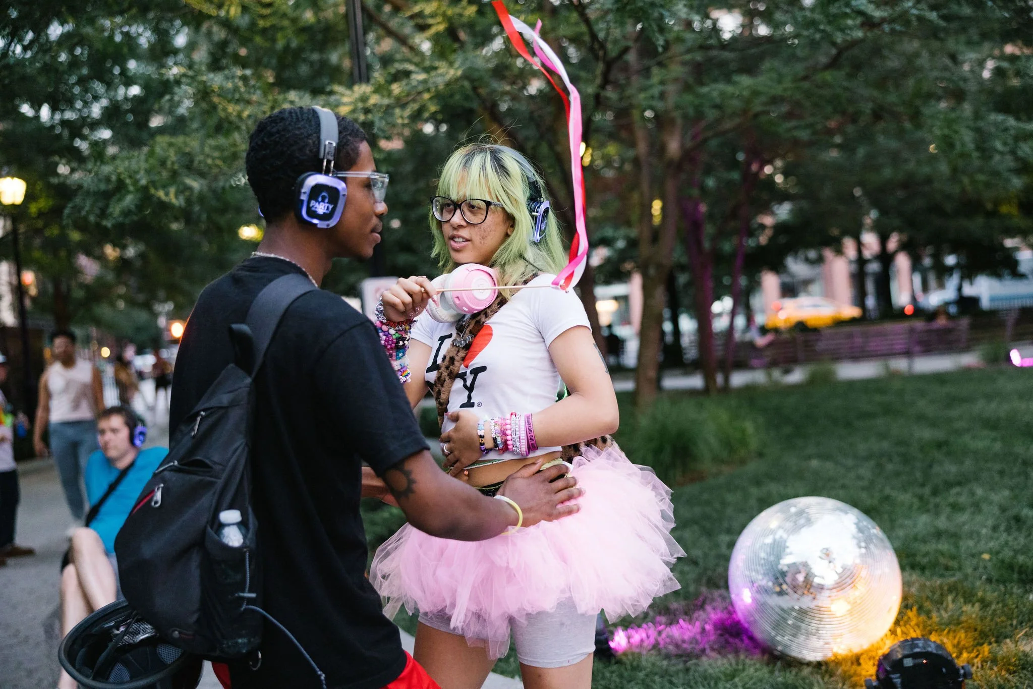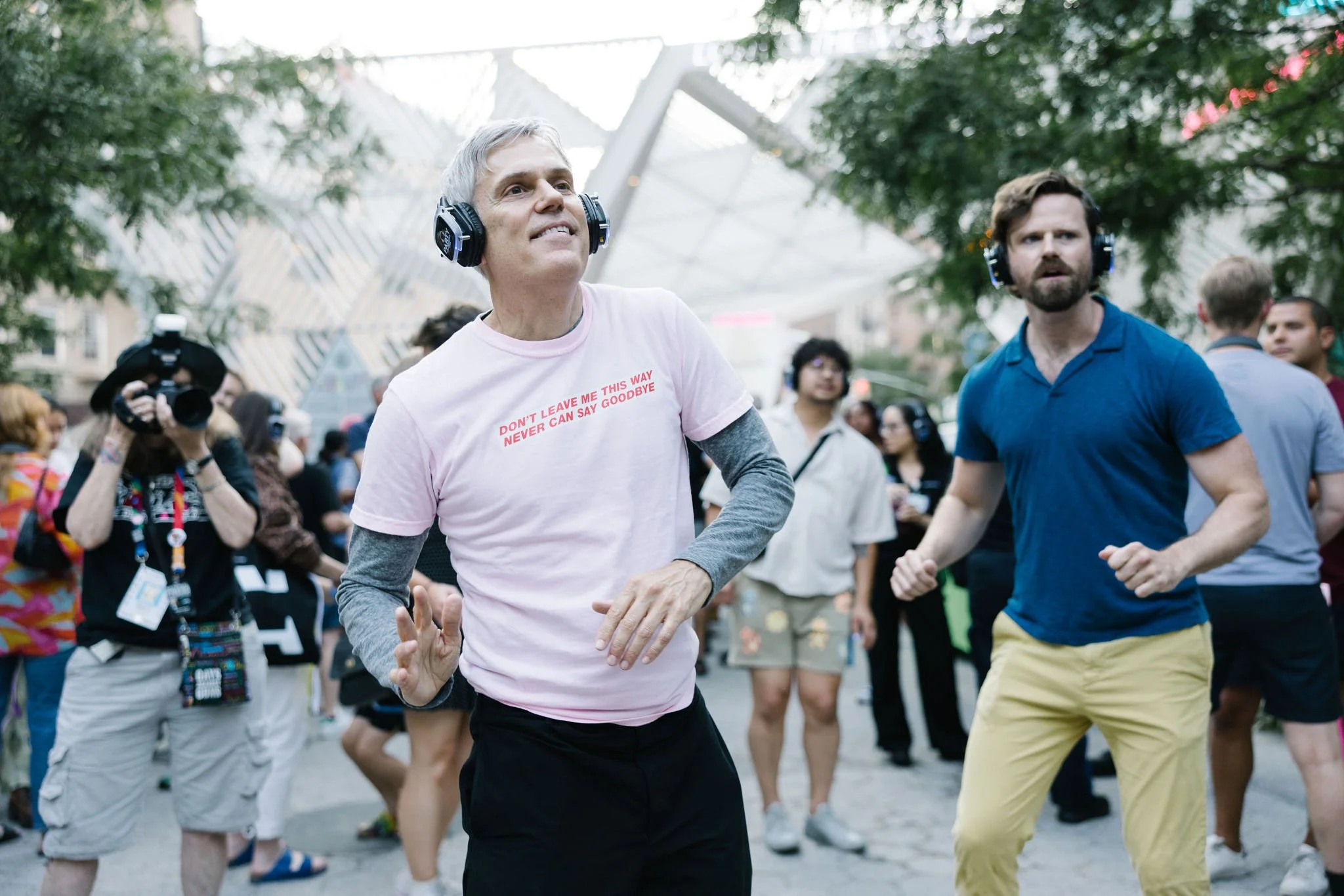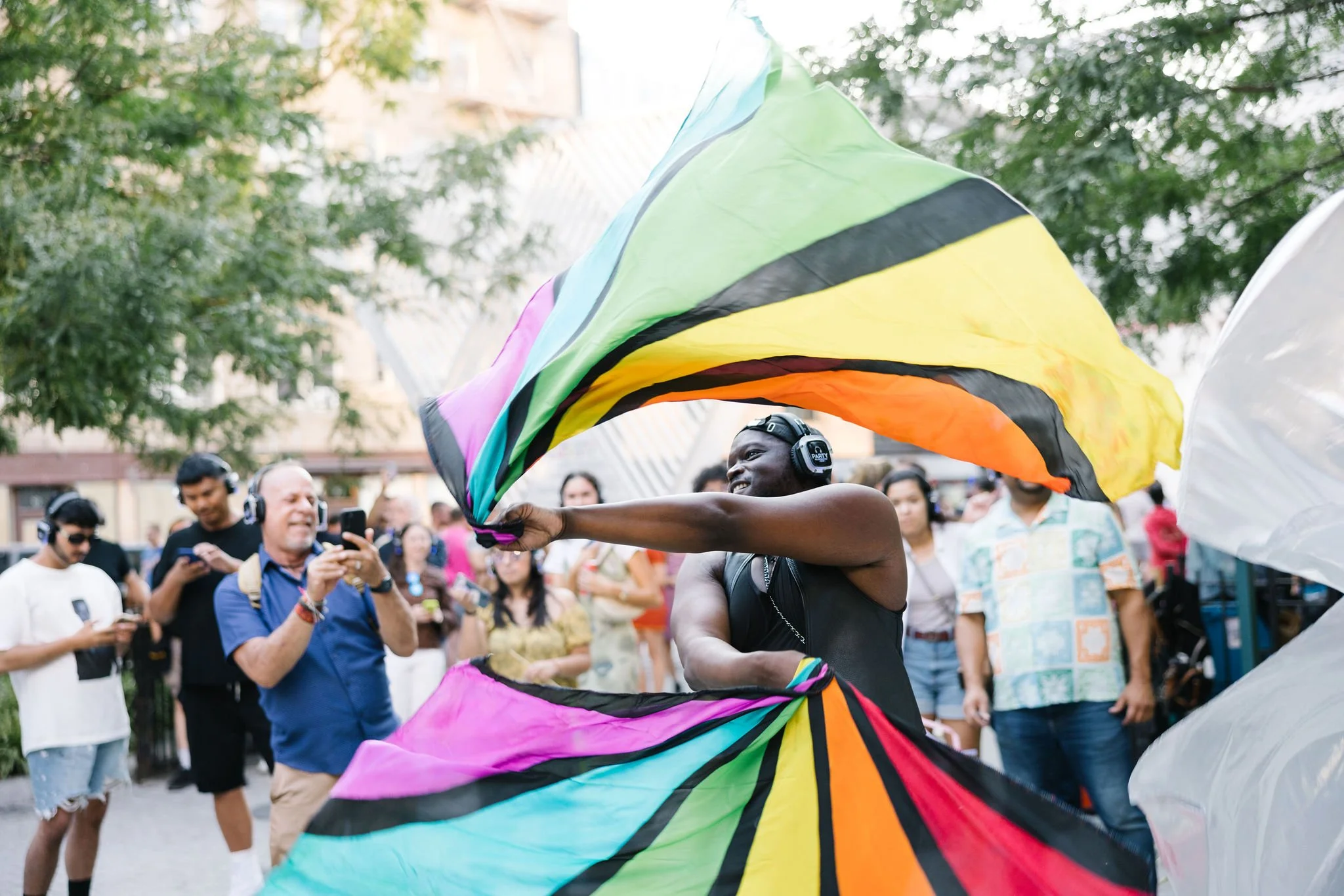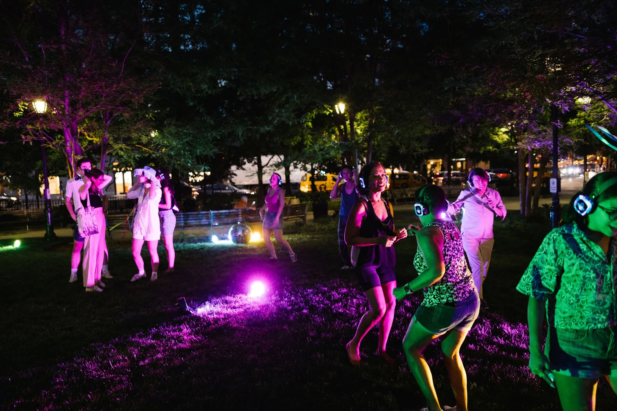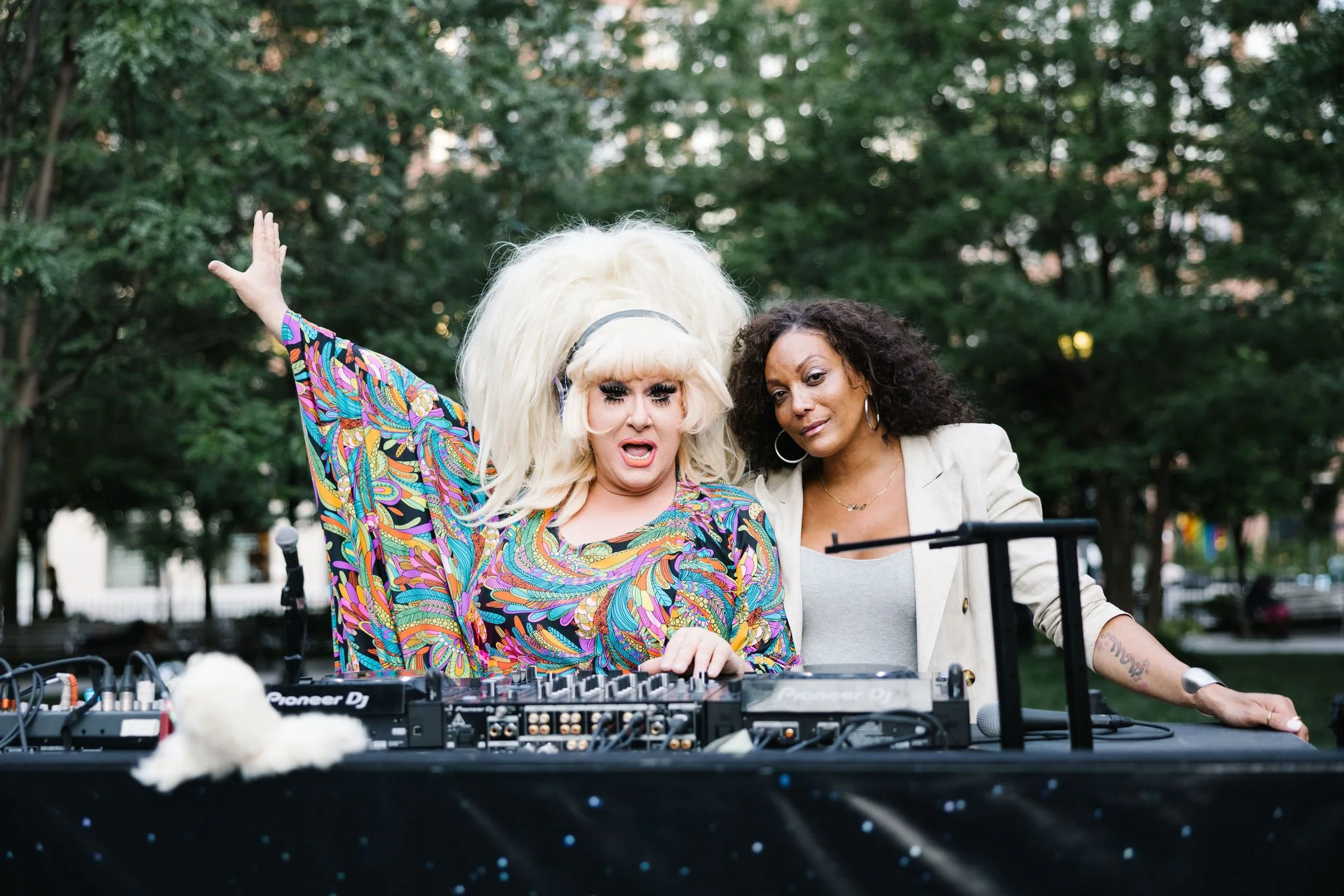 On Wednesday, June 29, from 7-9 PM, the New York City AIDS Memorial celebrated music, memory, and our new installation Songs for a Memorial with a silent disco dance party in the NYC AIDS Memorial Park at St. Vincent’s Triangle. We invited our friends, neighbors, supporters, and community to cool down after a bustling NYC Pride Weekend to dance under the stars with sets by DJ Lady Bunny and DJ Lina Bradford.