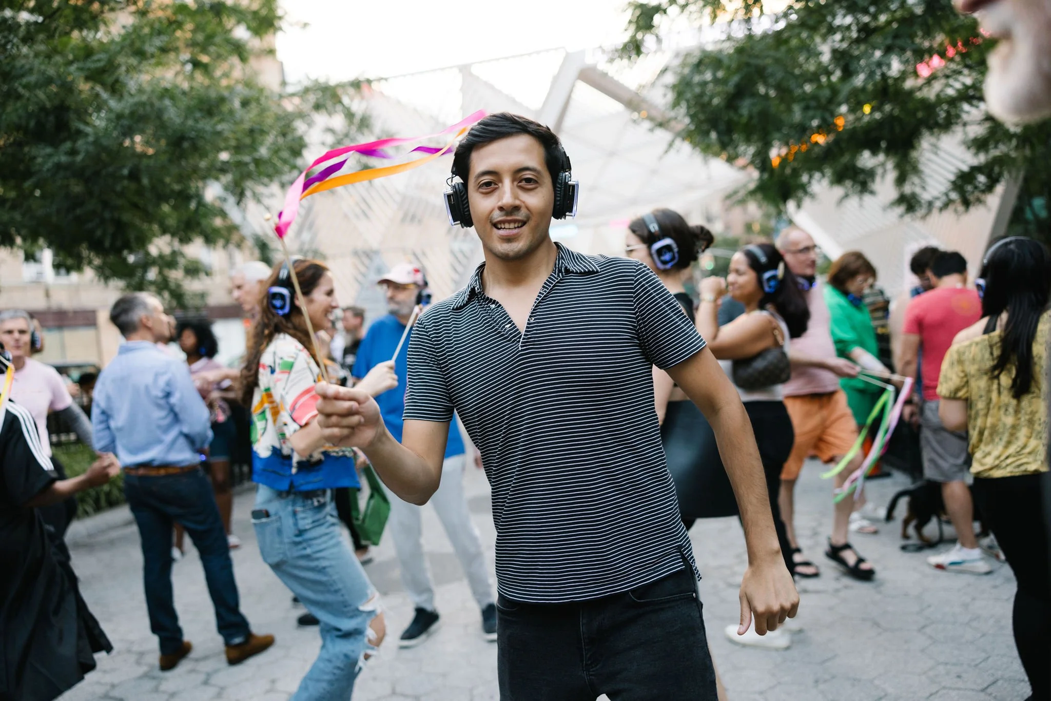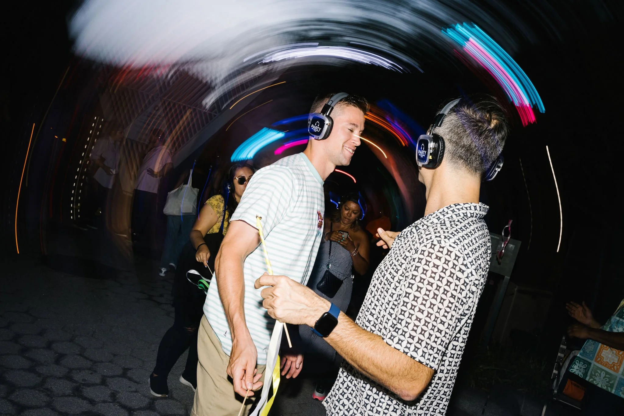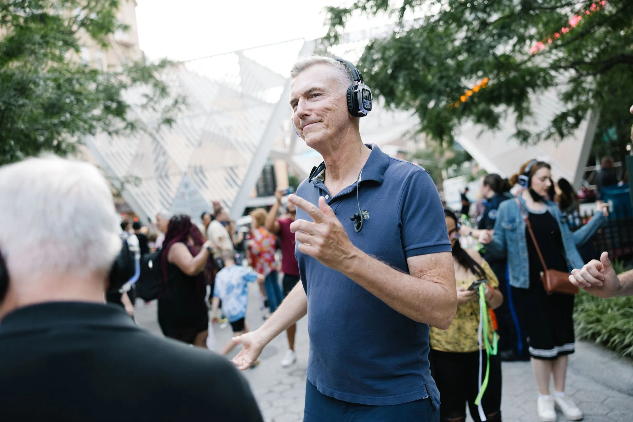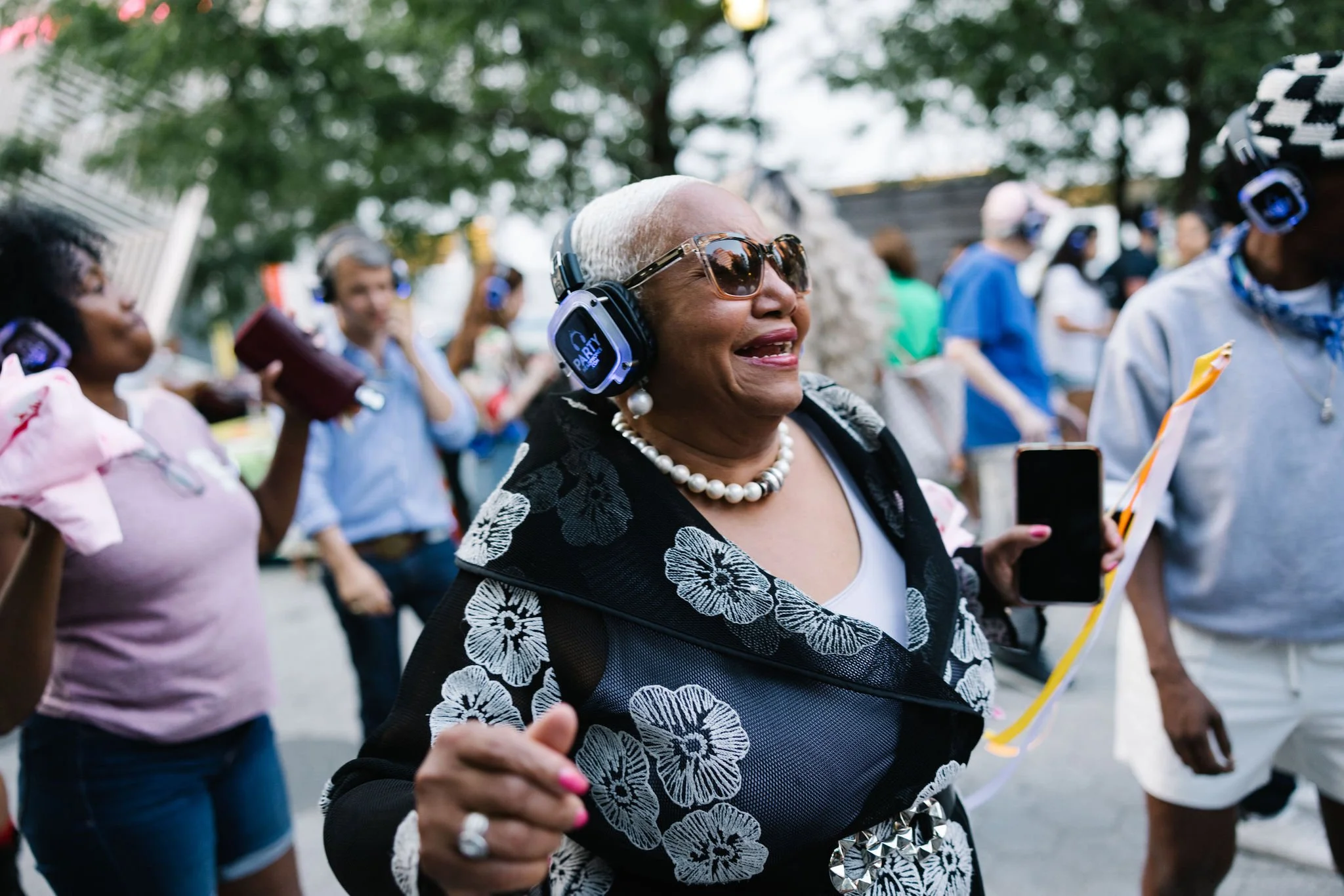 On Wednesday, June 29, from 7-9 PM, the New York City AIDS Memorial celebrated music, memory, and our new installation Songs for a Memorial with a silent disco dance party in the NYC AIDS Memorial Park at St. Vincent’s Triangle. We invited our friends, neighbors, supporters, and community to cool down after a bustling NYC Pride Weekend to dance under the stars with sets by DJ Lady Bunny and DJ Lina Bradford.