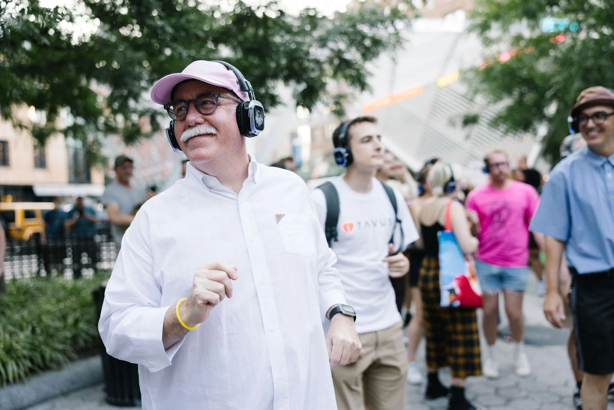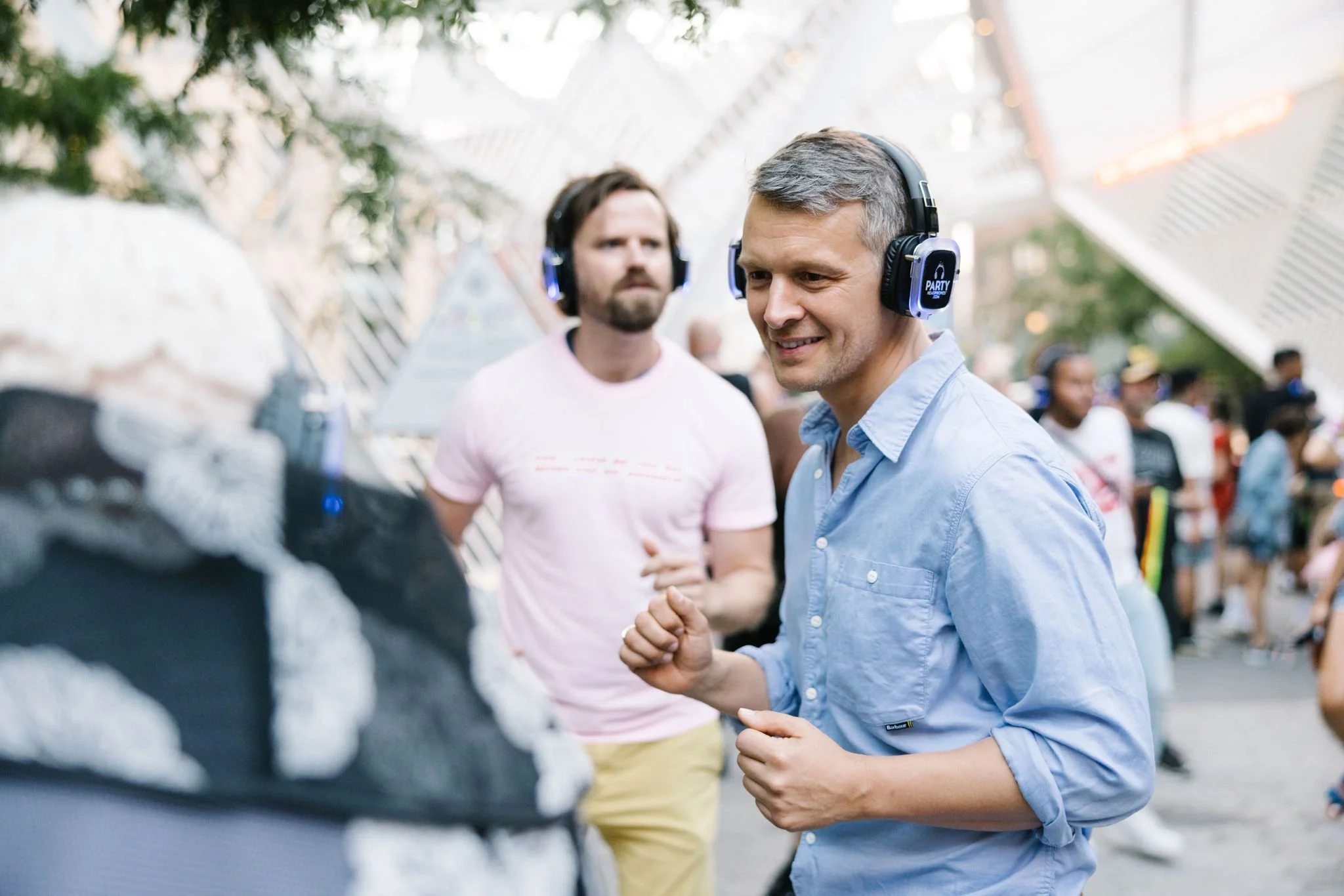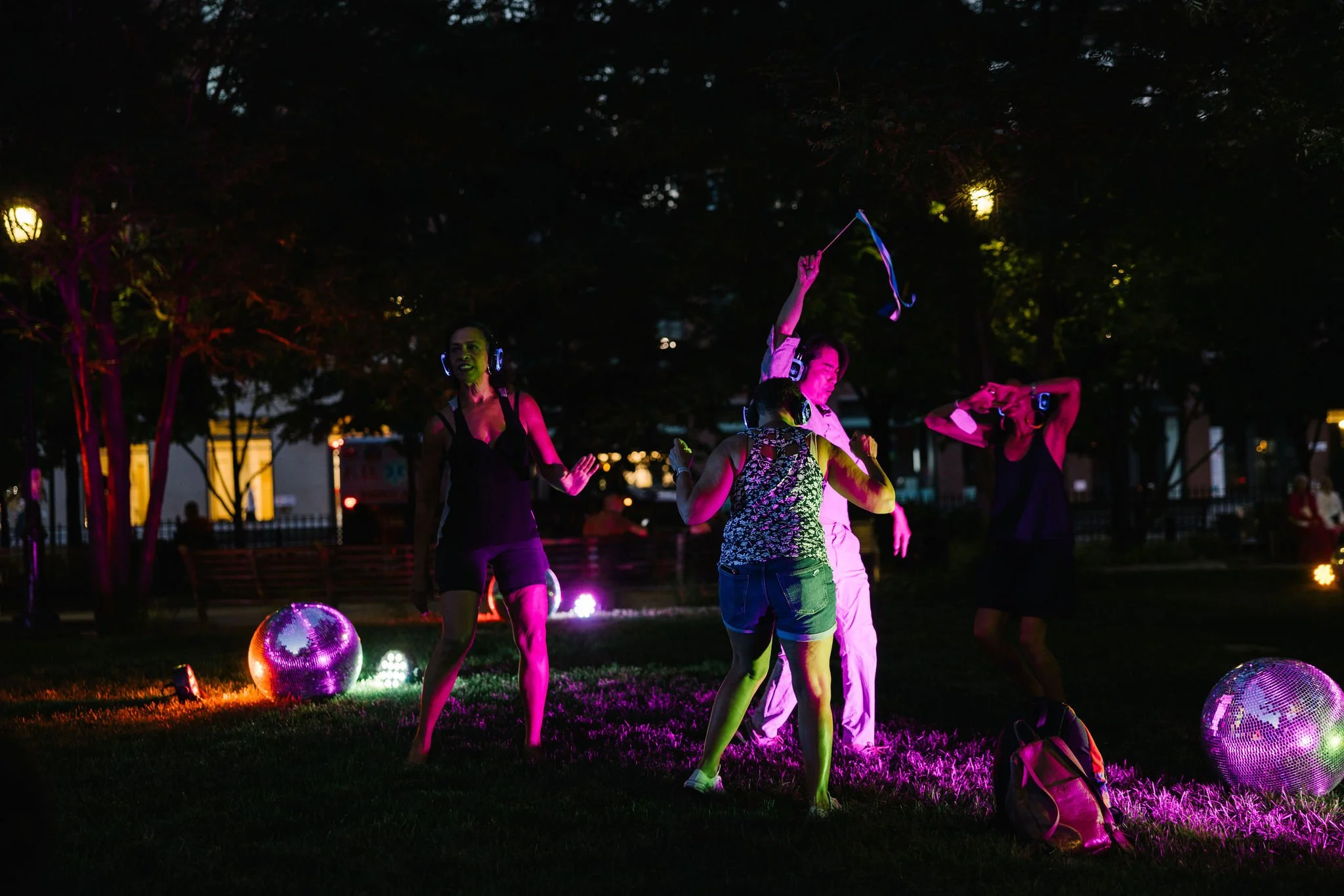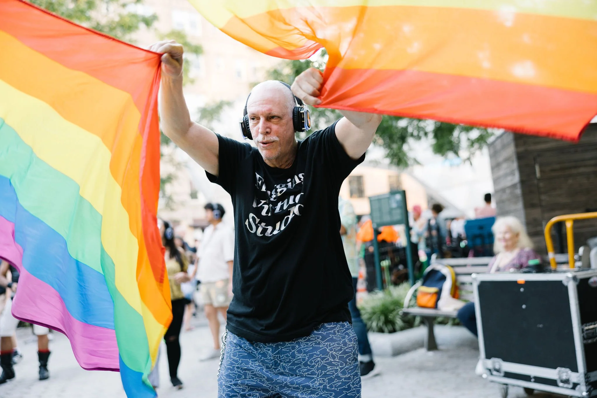 On Wednesday, June 29, from 7-9 PM, the New York City AIDS Memorial celebrated music, memory, and our new installation Songs for a Memorial with a silent disco dance party in the NYC AIDS Memorial Park at St. Vincent’s Triangle. We invited our friends, neighbors, supporters, and community to cool down after a bustling NYC Pride Weekend to dance under the stars with sets by DJ Lady Bunny and DJ Lina Bradford.